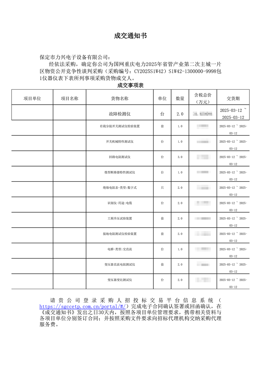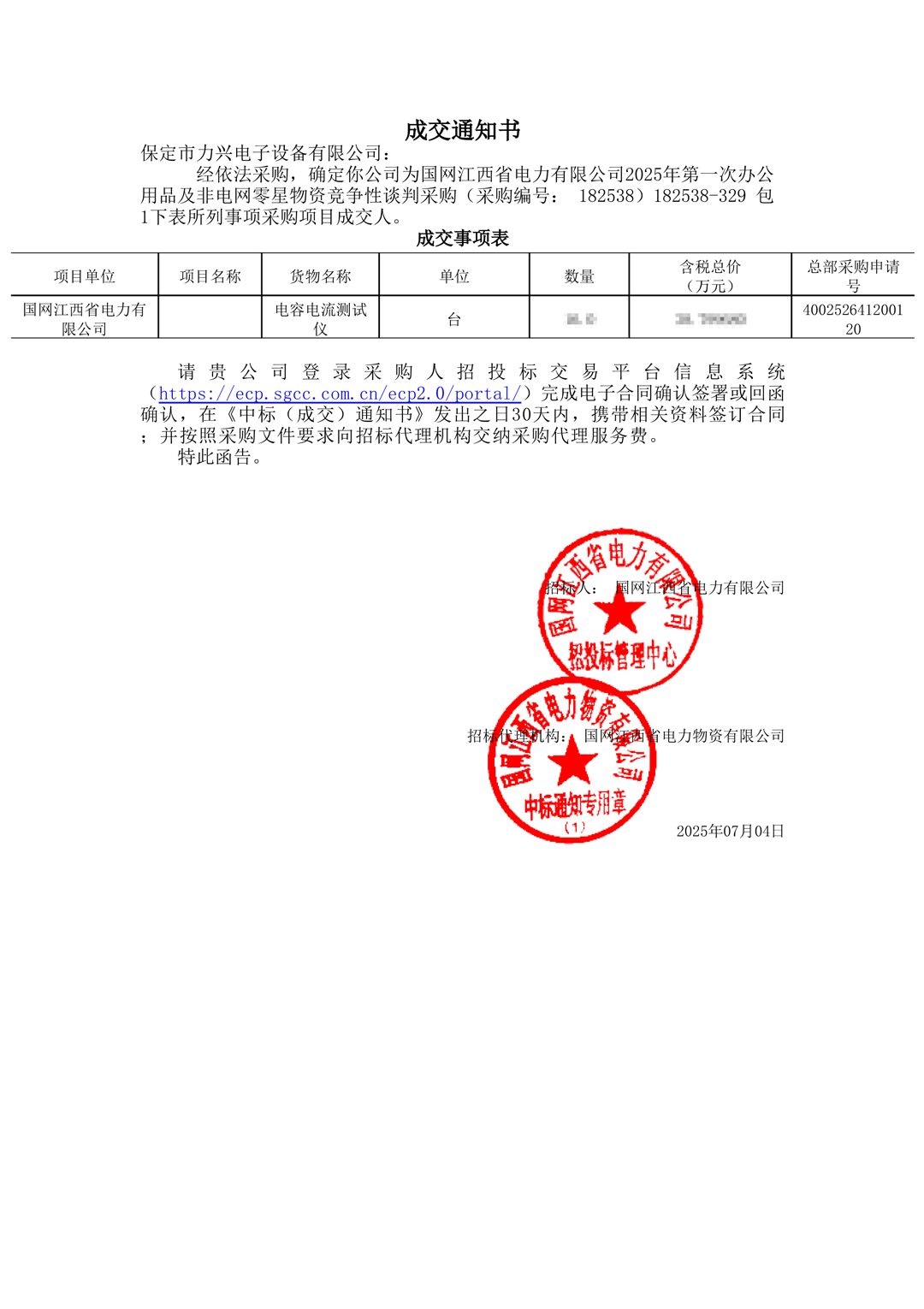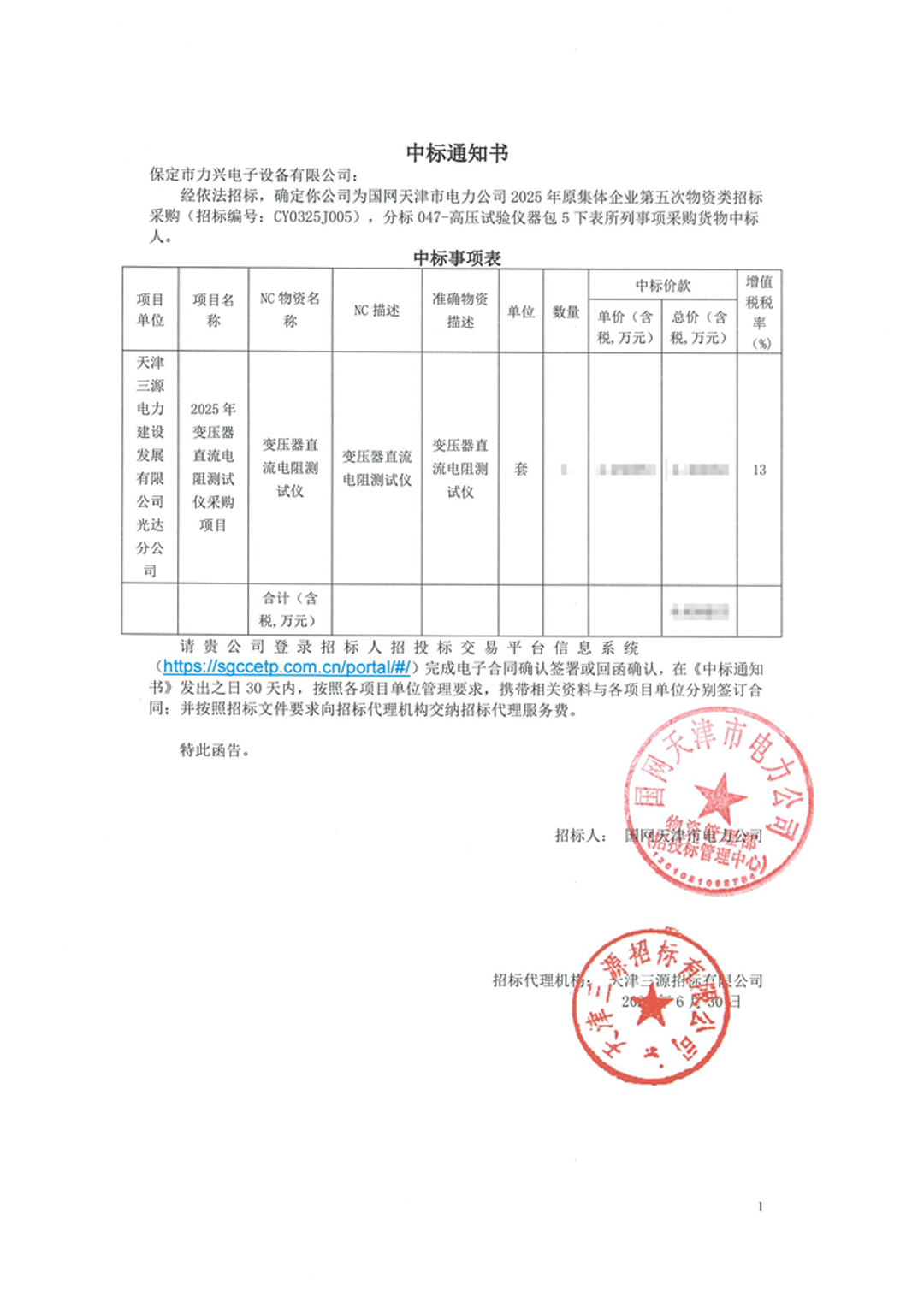 保定市力興電子設備有限公司第二季度中標通知如下展示,我們將團結一致,再接再厲,迎接已經到來的第三季度。